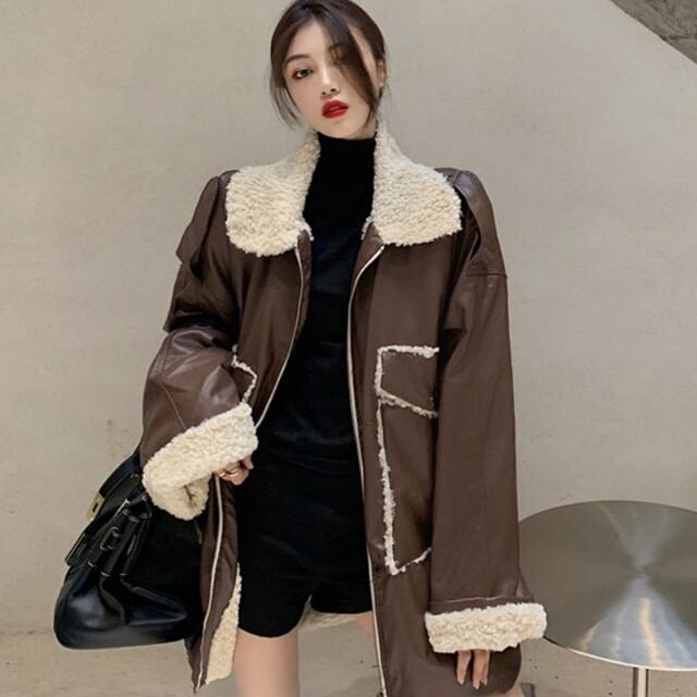 ボアデザインが可愛らしいレザージャケット♪