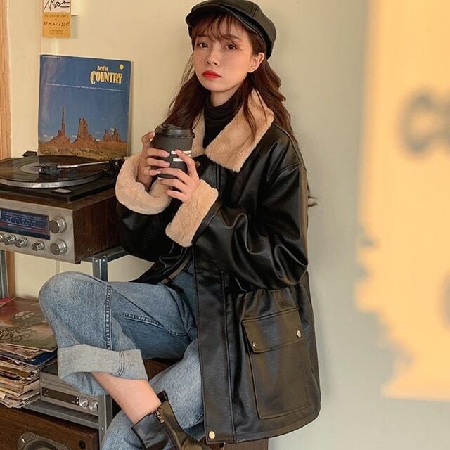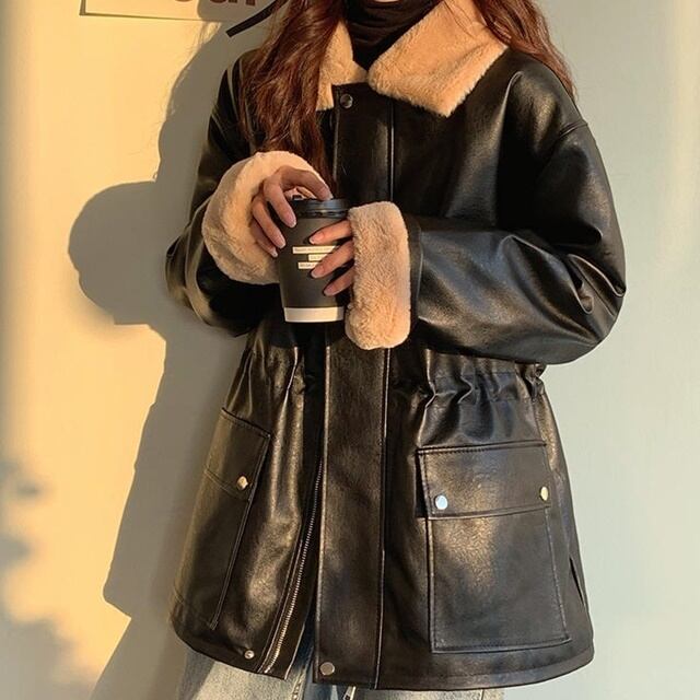 【送料無料】レザージャケット ステンカラージャケット アウター 羽織 ボア ビッグシルエット 長袖 無地 ゆったり きれいめ 甘辛 上品 きれいめ クール シック シンプル お出かけ デート 通勤 普段使い デイリー 着回し OT-358IU