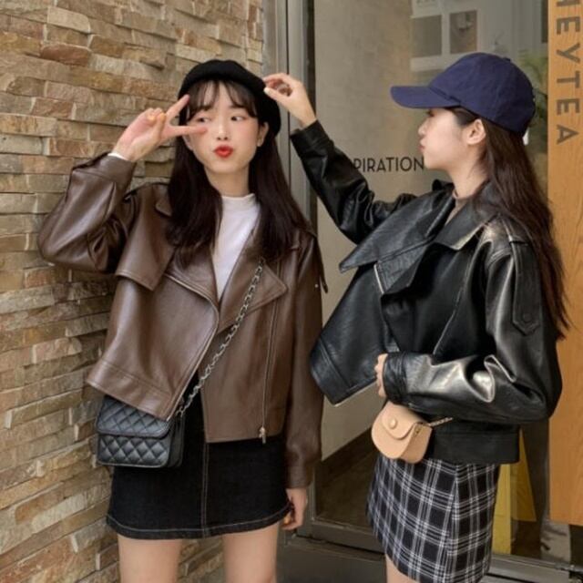 【送料無料】レザージャケット ライダースジャケット アウター 羽織 ショート丈 長袖 無地 ゆったり きれいめ 甘辛 上品 きれいめ クール シック シンプル お出かけ デート 通勤 普段使い デイリー 着回し OT-363IU