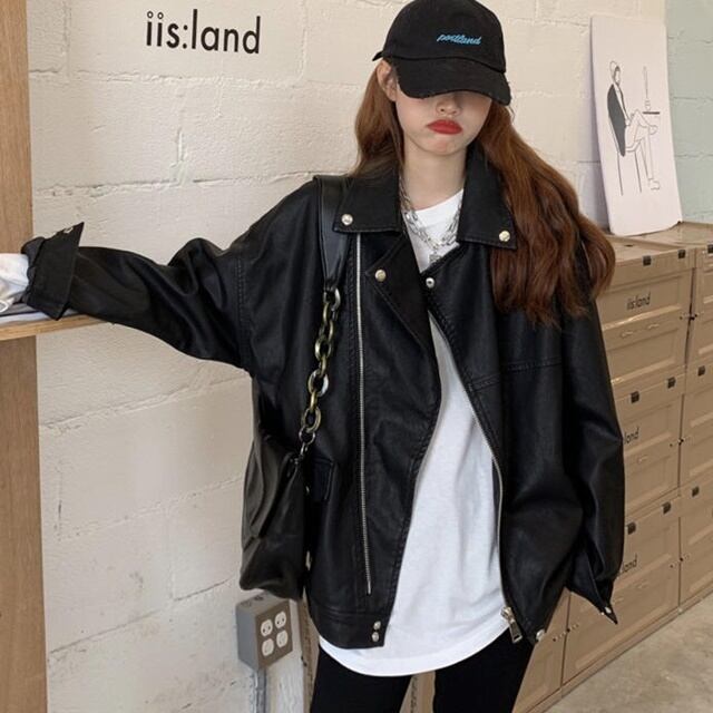 【送料無料】レザージャケット ステンカラージャケット アウター 羽織 ビッグシルエット 長袖 無地 ゆったり きれいめ 甘辛 上品 きれいめ クール シック シンプル お出かけ デート 通勤 普段使い デイリー 着回し OT-366IU