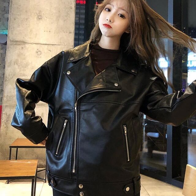 【送料無料】レザージャケット ライダースジャケット アウター 羽織 長袖 無地 ゆったり きれいめ 甘辛 上品 きれいめ クール シック シンプル お出かけ デート 通勤 普段使い デイリー 着回し OT-369IU