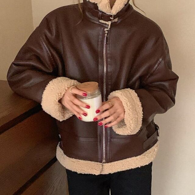 【送料無料】レザージャケット ムスタンジャケット アウター 羽織 ファー 長袖 無地 ゆったり きれいめ 甘辛 上品 きれいめ クール シック シンプル お出かけ デート 通勤 普段使い デイリー 着回し OT-383IU