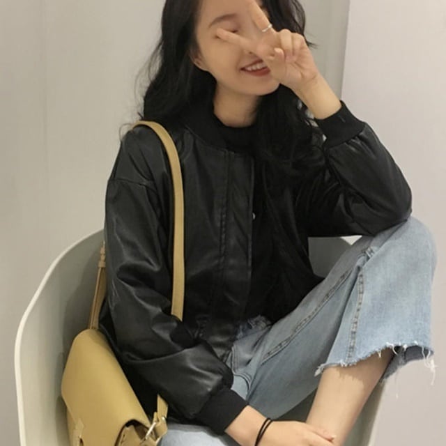 【送料無料】レザージャケット ブルゾン アウター 羽織 ショート丈 長袖 無地 ゆったり きれいめ 甘辛 上品 きれいめ クール シック シンプル お出かけ デート 通勤 普段使い デイリー 着回し OT-391IU