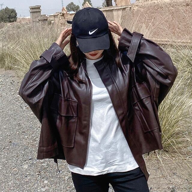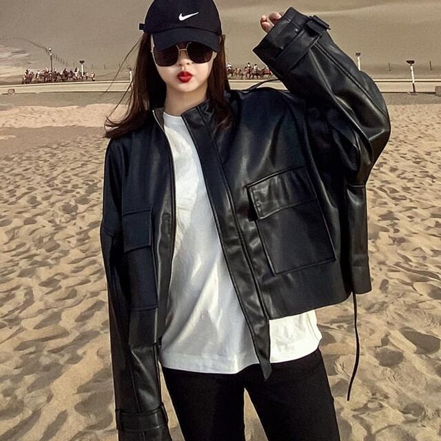 【送料無料】レザージャケット ブルゾン アウター 羽織 長袖 無地 ゆったり きれいめ 甘辛 上品 きれいめ クール シック シンプル お出かけ デート 通勤 普段使い デイリー 着回し OT-416IU