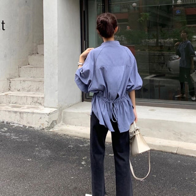 【送料無料】ブラウス シャツ トップス Vネック リボン ボリューム袖 バルーンスリーブ ゆったり 七分袖 カジュアル レトロ 大人可愛い シンプル ベーシック おしゃれ お出かけ デート 普段使い デイリー 着回し TO-393IU