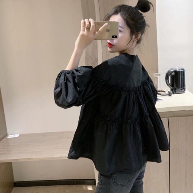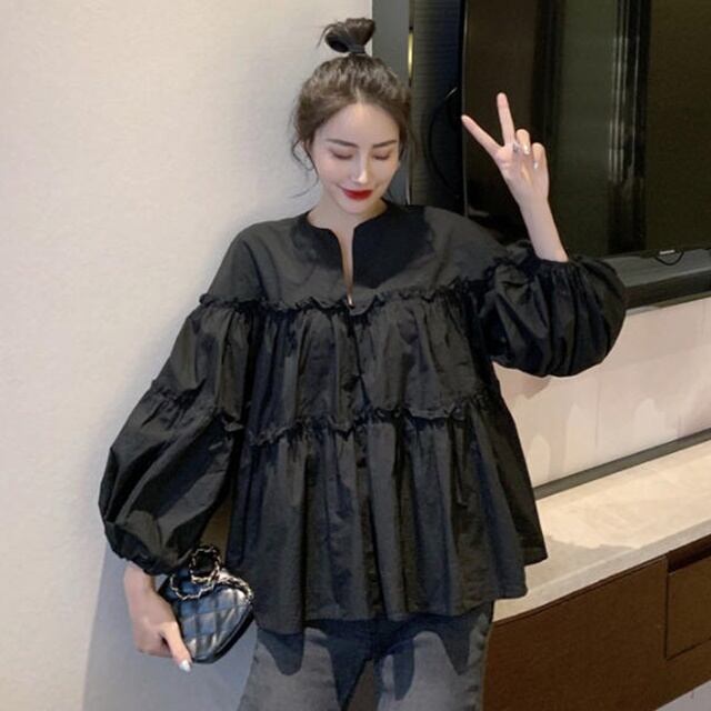 【送料無料】ブラウス トップス フリル ボリューム袖 バルーンスリーブ 長袖 ゆったり 無地 シンプル おしゃれ 大人可愛い カジュアル お出かけ デート 普段使い デイリー 着回し TO-396IU