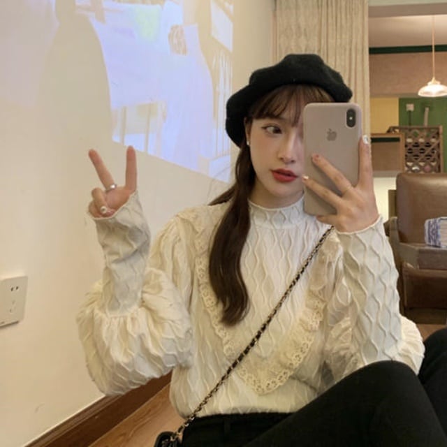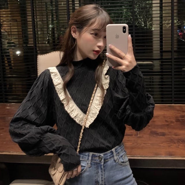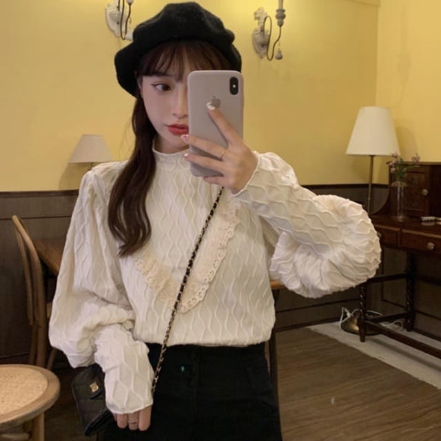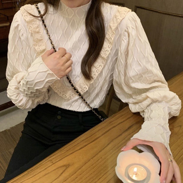 【送料無料】ブラウス トップス ボリューム袖 バルーンスリーブ ハイネック レース 長袖 ゆったり レトロ フェミニン エレガント きれいめ 上品 お出かけ デート 普段使い デイリー 着回し TO-407IU