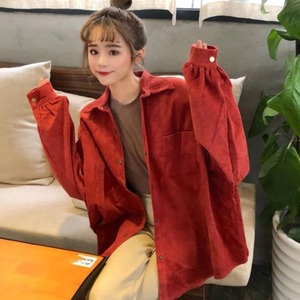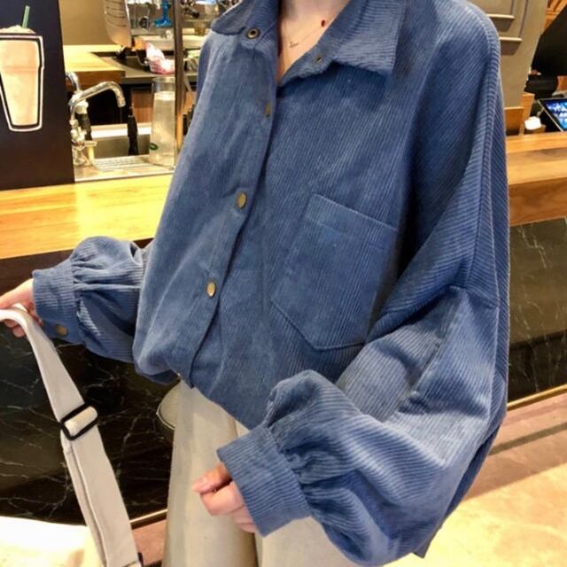 【送料無料】ブラウス シャツ トップス コーデュロイ ビッグシルエット 大きいサイズ ボリューム袖 バルーンスリーブ 長袖 ゆったり カジュアル レトロ シンプル ベーシック お出かけ デート 普段使い デイリー 着回し TO-416IU