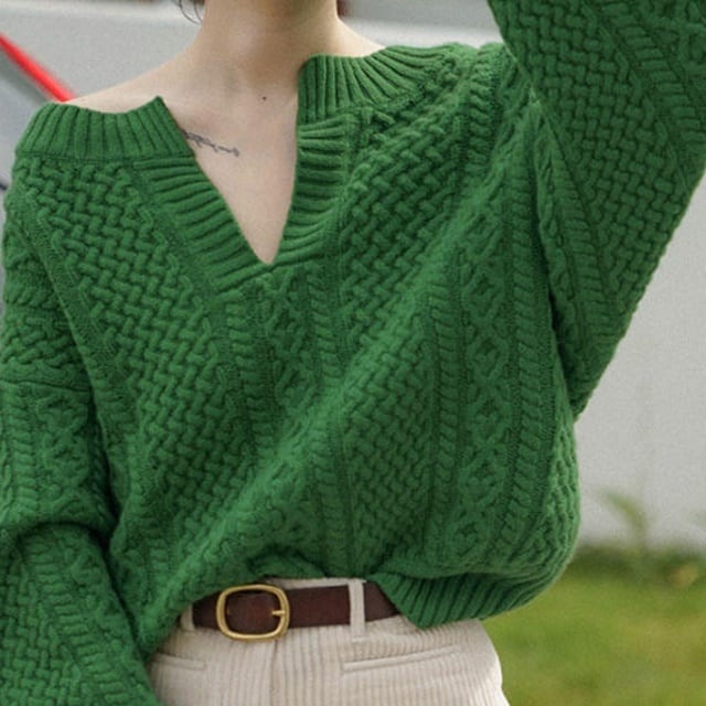 【送料無料】ニット セーター トップス ケーブル編み キーネック ボリューム袖 バルーンスリーブ 長袖 カジュアル 大人可愛い セクシー おしゃれ お出かけ デート 普段使い デイリー 着回し TO-430IU