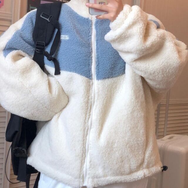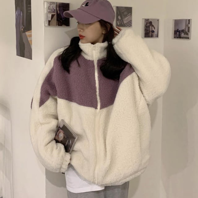 【送料無料】ボアジャケット アウター ロゴ ビッグシルエット バイカラー ハイネック ゆったり もこもこ 大人可愛い カジュアル シンプル おしゃれ 防寒 暖かい お出かけ デート 普段使い デイリー 着回し OT-434IU