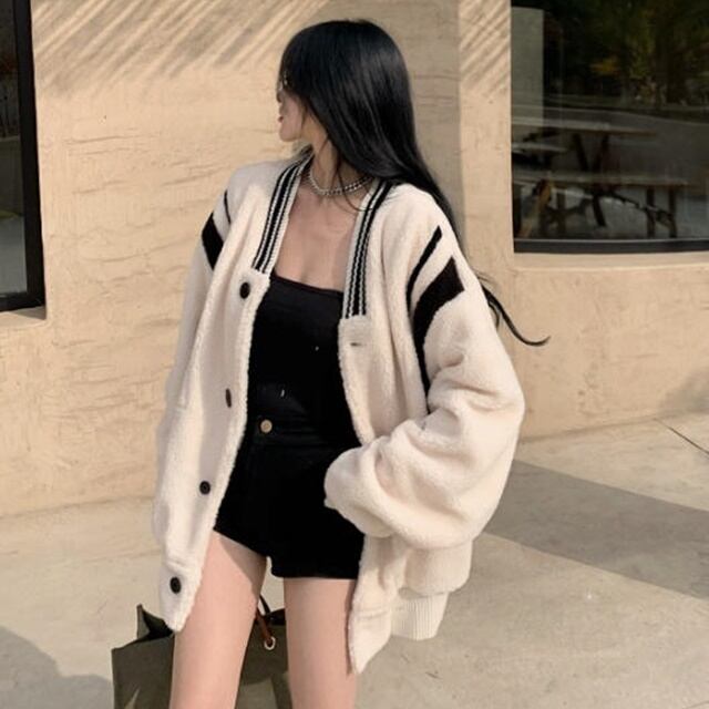 【送料無料】ボアジャケット ブルゾン カーディガン アウター ビッグシルエット バイカラー ゆったり もこもこ 大人可愛い カジュアル シンプル きれいめ ベーシック おしゃれ 防寒 暖かい お出かけ デート 普段使い デイリー 着回し OT-445IU