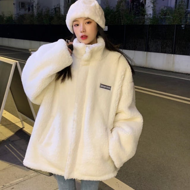 【送料無料】ボアジャケット ブルゾン アウター ビッグシルエット ロゴ ハイネック ゆったり もこもこ 大人可愛い カジュアル シンプル ベーシック おしゃれ 防寒 暖かい お出かけ デート 普段使い デイリー 着回し OT-458IU