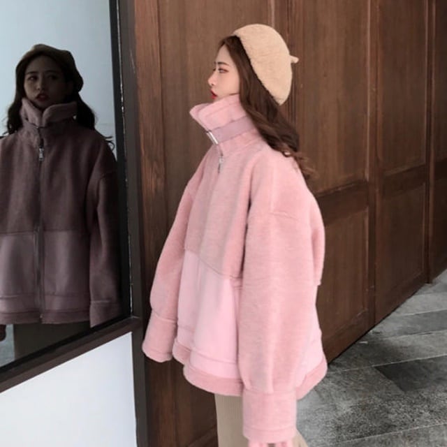 【送料無料】ボアジャケット フェイクムートン アウター ビッグシルエット ハイネック ゆったり もこもこ 大人可愛い カジュアル シンプル ベーシック ガーリー フェミニン おしゃれ 防寒 暖かい お出かけ デート 普段使い デイリー 着回し OT-465IU
