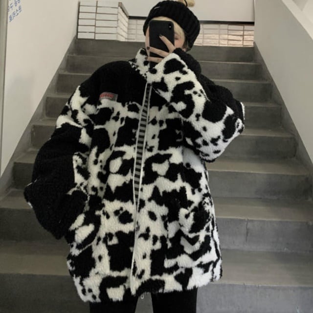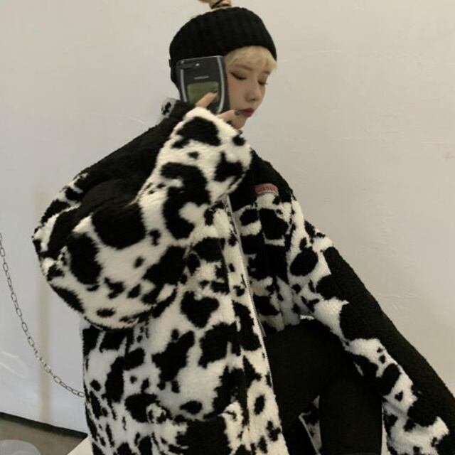 【送料無料】ボアブルゾン ヒョウ柄 韓国 ボアジャケット ビッグシルエット ゆったり ハイネック カジュアル ストリート 20代 30代 ホワイト ブラック OT-493IU