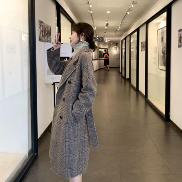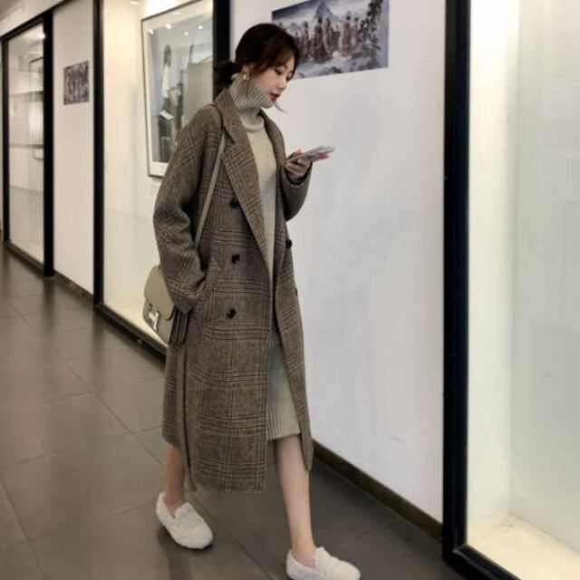 【送料無料】グレンチェックコート コート 冬 きれいめ ロング チェスターコート ウール ロングコート アウター 大きいサイズ オーバーサイズ レトロ 大人 20代 30代 40代 ブラウン OT-506IU