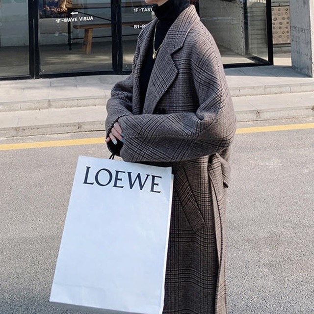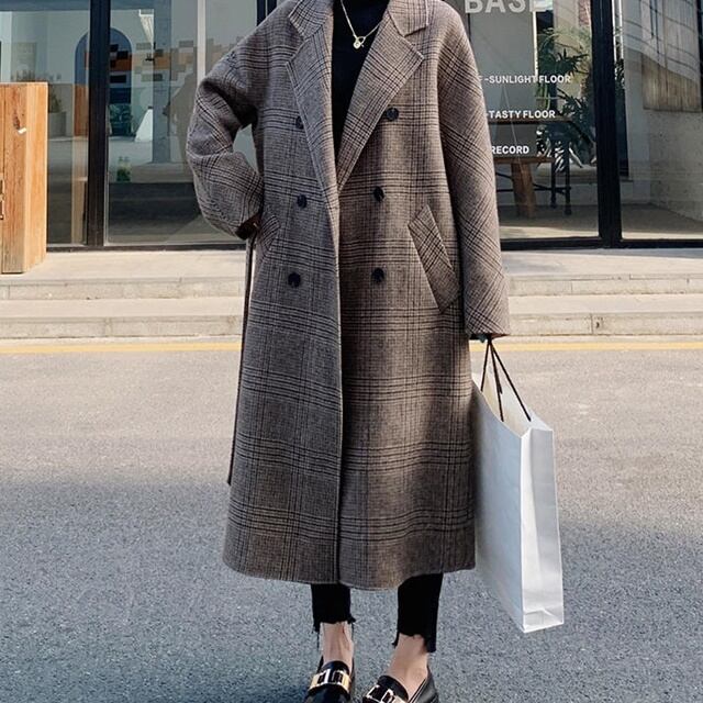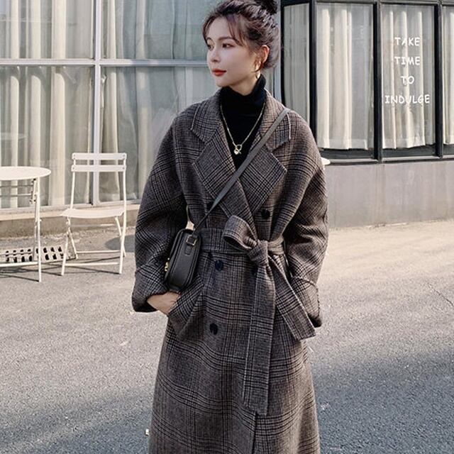 【送料無料】グレンチェックコート コート 冬 きれいめ ロング チェスターコート ウール ロングコート アウター 大きいサイズ オーバーサイズ ウエストリボン レトロ 上品 大人 20代 30代 40代 ブラウンOT-507IU