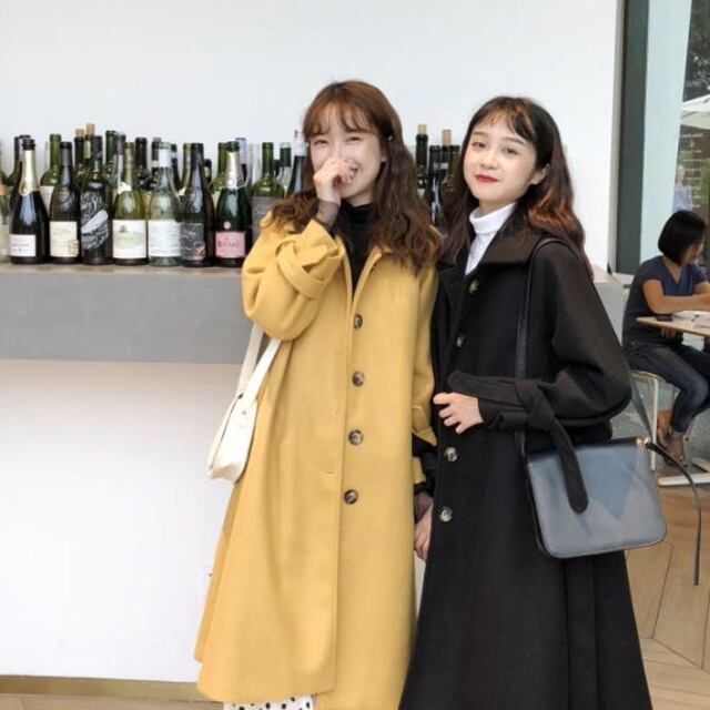 【送料無料】ステンカラーコート 冬 ロング ウール ロングコート 大きいサイズ 黒 大人 上品 レトロ カジュアル イエロー ブラック OT-517IU
