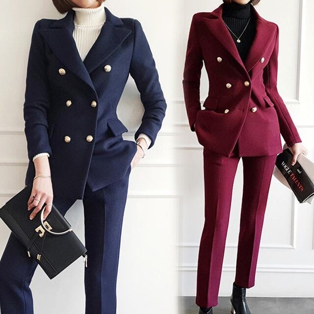 【送料無料】セットアップ 秋冬 カジュアル おしゃれ きれいめ 大きいサイズ 冬 パンツスーツ フォーマル 大人 上品 20代 30代 40代 入学式 卒業式 お呼ばれ 結婚式 レッド ネイビー ブラック ST-032IU