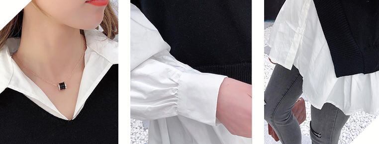 【送料無料】異素材トップス 異素材ニット シャツ ニット 重ね着風 切り替え 長袖 カットソー ニットトップス レイヤード カジュアル デート お出かけ 通勤 春 秋冬 20代 30代 40代 ブラック TO-447IU