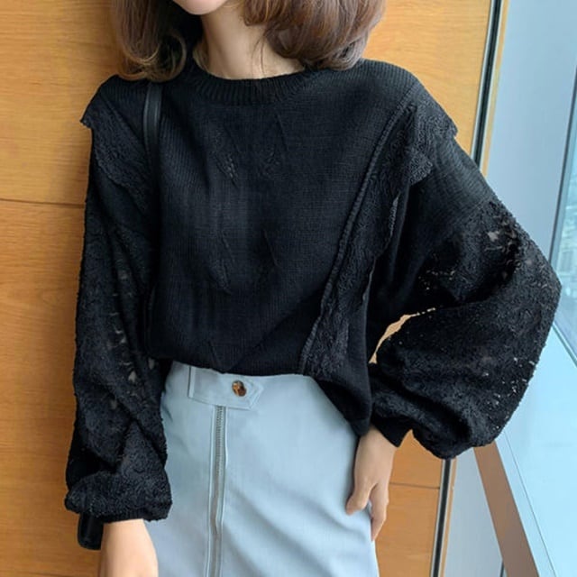 ニット&レース袖でとってもガーリーな重ね着風トップス♪