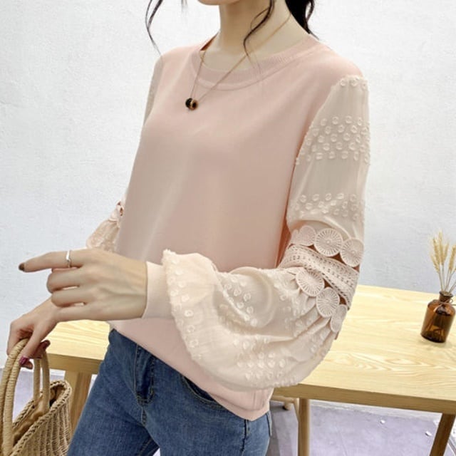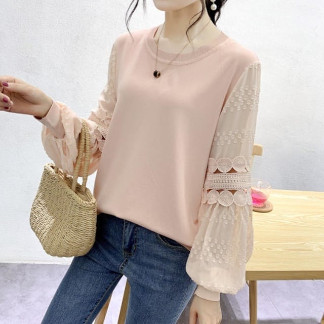 【送料無料】異素材トップス 異素材ニット 切り替え 長袖 重ね着風 カットソー ニットトップス レイヤード レース カジュアル デート お出かけ 通勤 春 秋冬 20代 30代 40代 ピンク ホワイト イエロー ブラック TO-453IU