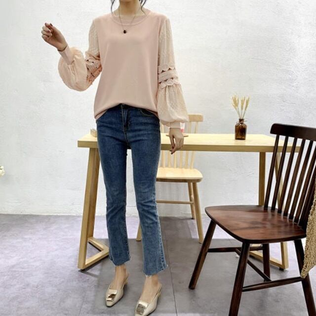 袖に遊び心のあるデザインで、さまざまな角度からおしゃれを楽しめる重ね着風トップス!