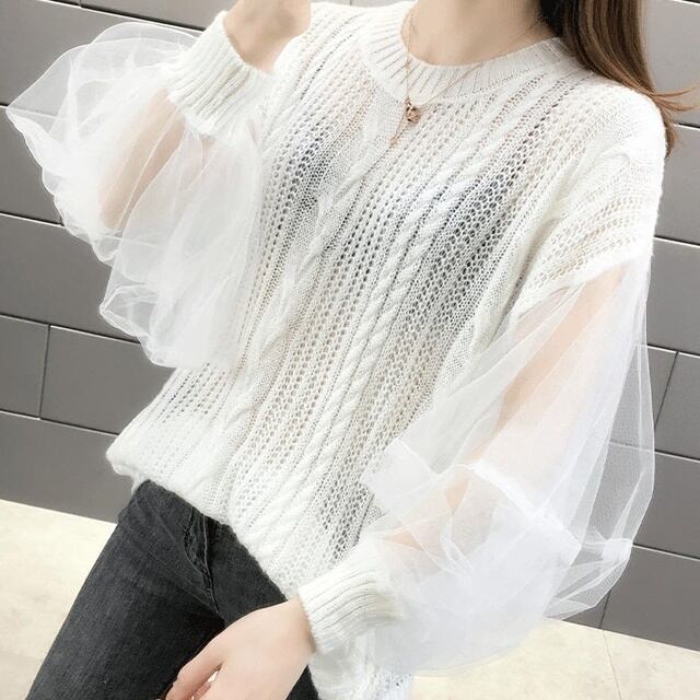 【送料無料】異素材トップス 異素材ニット ドルマンニット ドルマンスリーブ 切り替え 長袖 重ね着風 カットソー ニットトップス レイヤード ボリューム袖 レース シースルー カジュアル デート お出かけ 通勤 春 秋冬 20代 30代 40代 ホワイト ベージュ TO-454IU