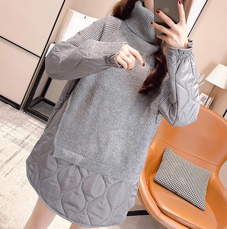 【送料無料】異素材トップス 異素材ニット 切り替え 長袖 重ね着風 カットソー ニットトップス レイヤード タートルネック キルティング カジュアル デート お出かけ 通勤 春 秋冬 20代 30代 40代 ブラウン ブラック グレー TO-469IU