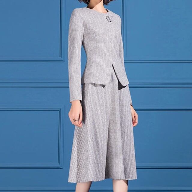 女性らしいシルエットで優雅に見えるワンピースタイプのフォーマルセットアップ。