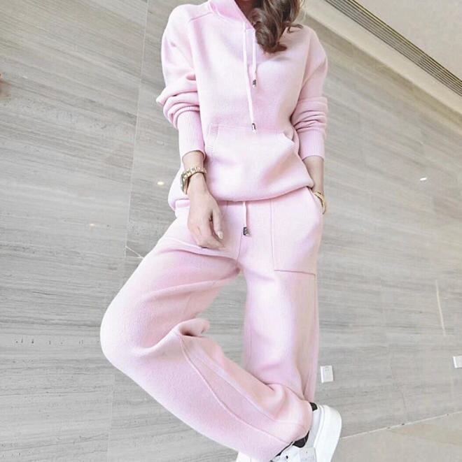 【送料無料】セットアップ ニット 秋冬 カジュアル おしゃれ 長袖 パーカー ロングパンツ 部屋着 ルームウェア シンプル 20代 30代 40代 ピンク ベージュ グレー BY-002