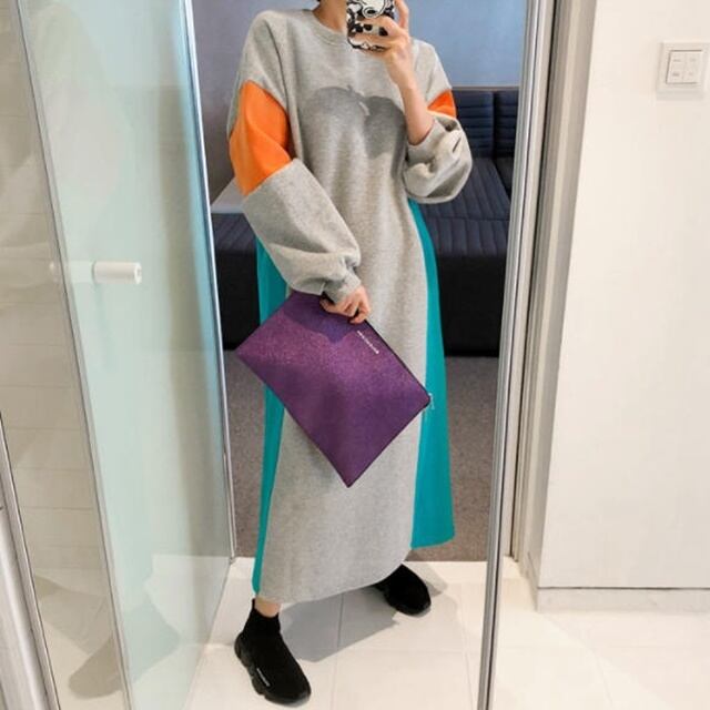 【送料無料】スウェットワンピース ロング ワンピース 冬 長袖 秋冬 おしゃれ マルチカラー 体型カバー カジュアル 20代 30代 40代 ブラック グレー BY-006