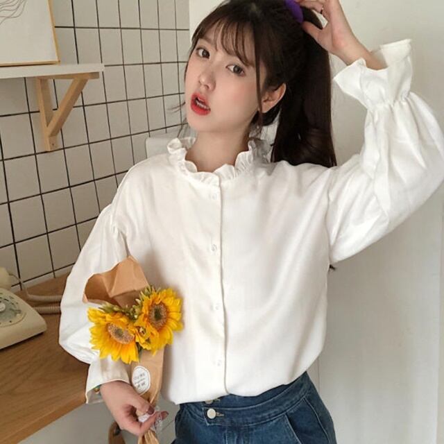 【送料無料】ブラウス レディース 立ち襟 フリル おしゃれ トップス シャツ カジュアル ガーリー きれいめ 大人 20代 30代 40代 ブラウン ホワイト パープル BY-007