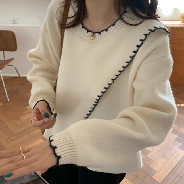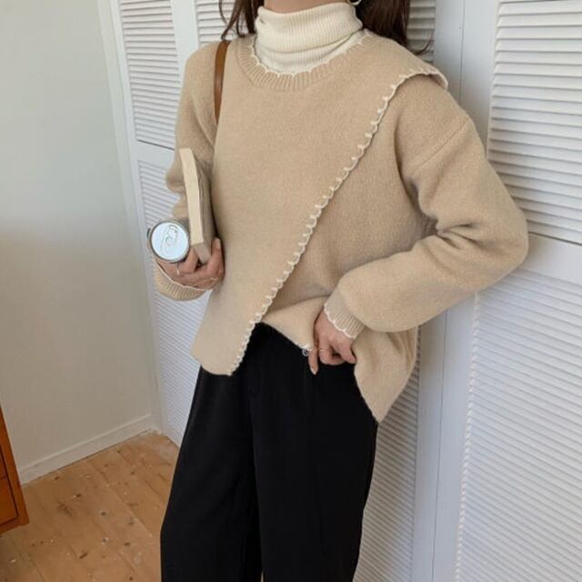 【送料無料】ニット レディース スカラップ スリット 秋冬 長袖 おしゃれ ゆったり カジュアル 大人 ホワイト ベージュ ブラウン 20代 30代 40代 BY-017