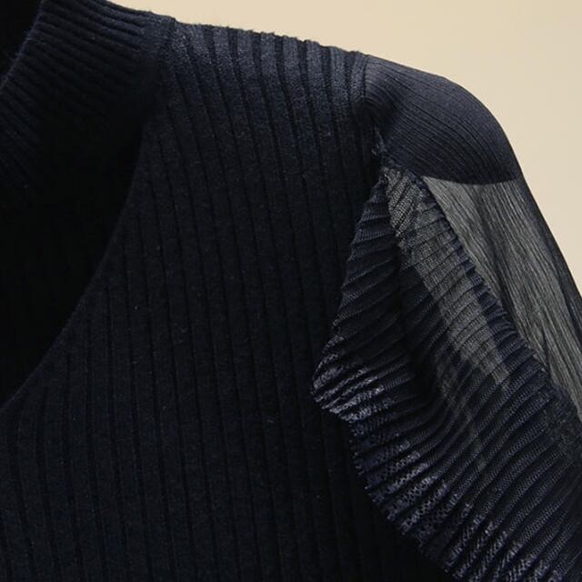 【送料無料】ニット レディース リブニット フリル シースルー 秋冬 長袖 大人 上品 きれいめ おしゃれ 20代 30代 40代 ホワイト ブラック BY-021