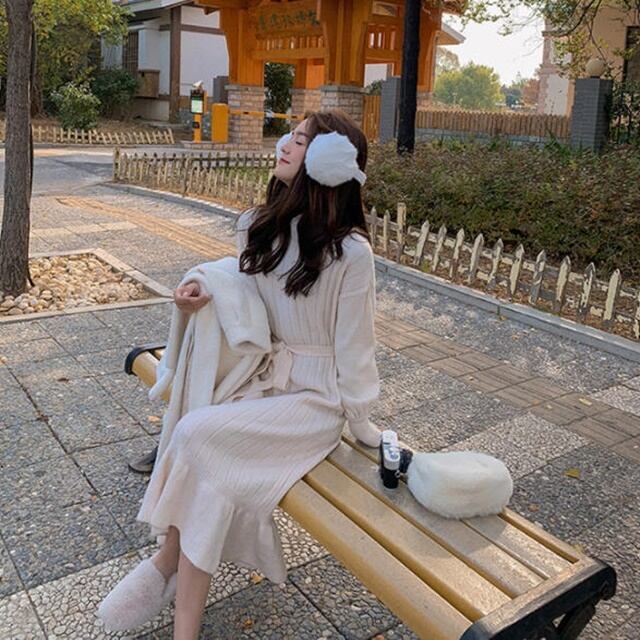 マーメイドデザインでフェミニンな印象になるニットワンピース♪