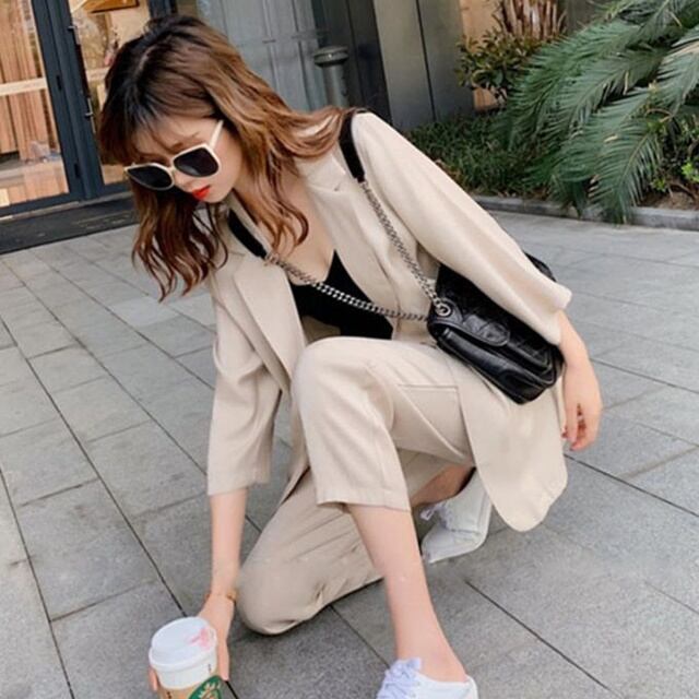 【送料無料】セットアップ レディース おしゃれ パンツスーツ 卒園式 大きいサイズ 卒業式 長袖 ジャケット テーパードパンツ ハイウエスト フォーマル お呼ばれ 同窓会 きれいめ 大人 上品 20代 30代 ベージュ ブラック BY-065