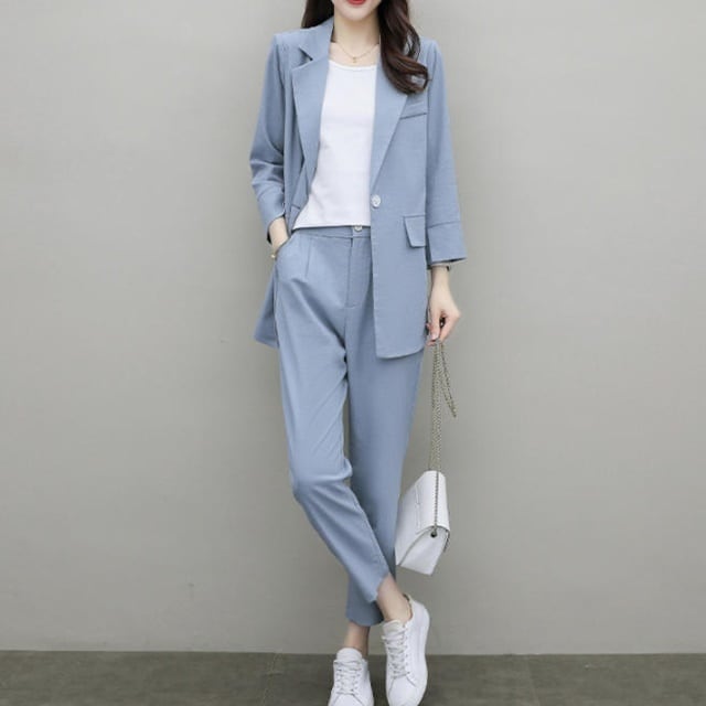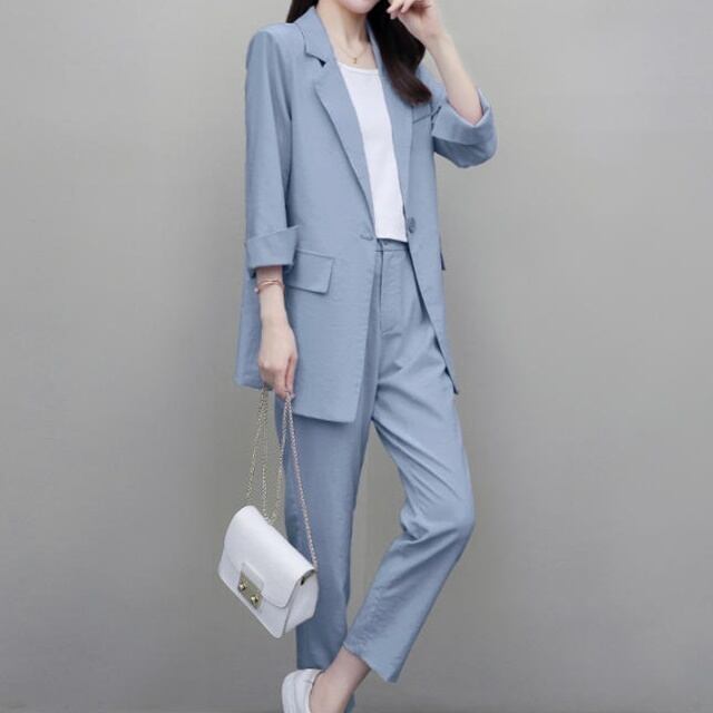【送料無料】セットアップ レディース おしゃれ パンツスーツ 卒園式 大きいサイズ 卒業式 長袖 ジャケット テーパードパンツ ハイウエスト フォーマル お呼ばれ 同窓会 きれいめ 大人 上品 20代 30代 40代 ブルー ベージュ ピンク パープル オレンジ ブラック BY-079