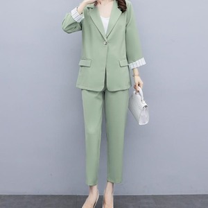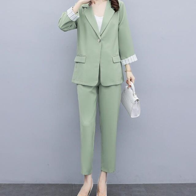 【送料無料】セットアップ レディース おしゃれ パンツスーツ 卒園式 大きいサイズ 卒業式 フォーマル お呼ばれ 同窓会 きれいめ 長袖 大人 上品 ストライプ 20代 30代 40代 ピンク グリーン ブラック BY-081