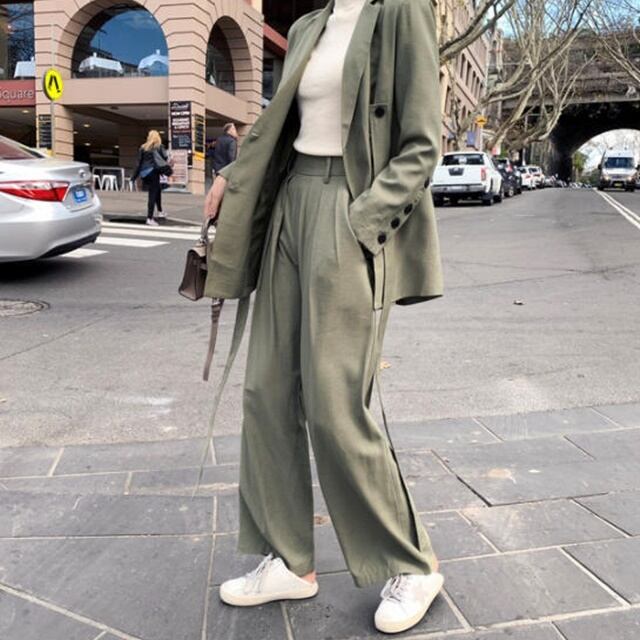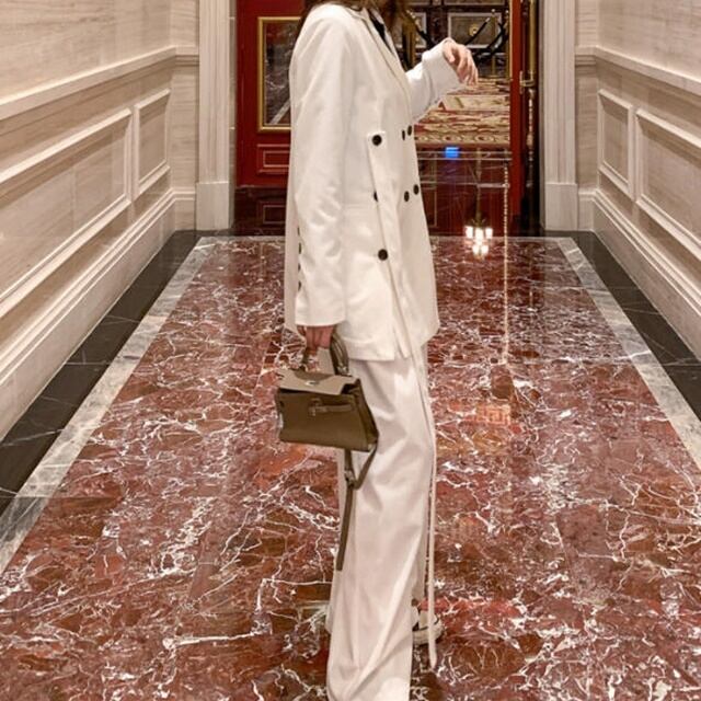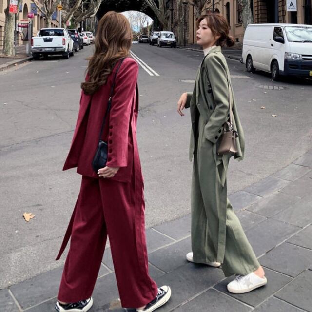 【送料無料】セットアップ レディース おしゃれ パンツスーツ 卒園式 大きいサイズ 卒業式 長袖 ジャケット ワイドパンツ きれいめ ハイウエスト フォーマル お呼ばれ 同窓会 大人 上品 20代 30代 40代 グリーン レッド ブルー ホワイト BY-083
