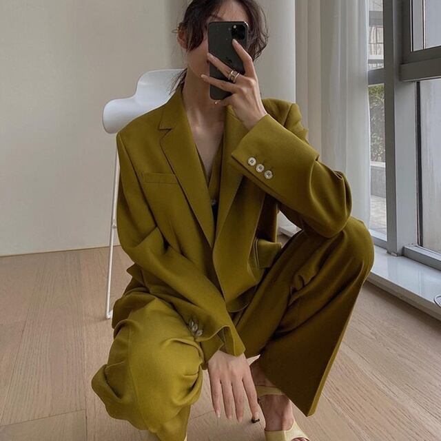暗めのイエローカラーが大人っぽいセットアップ♪