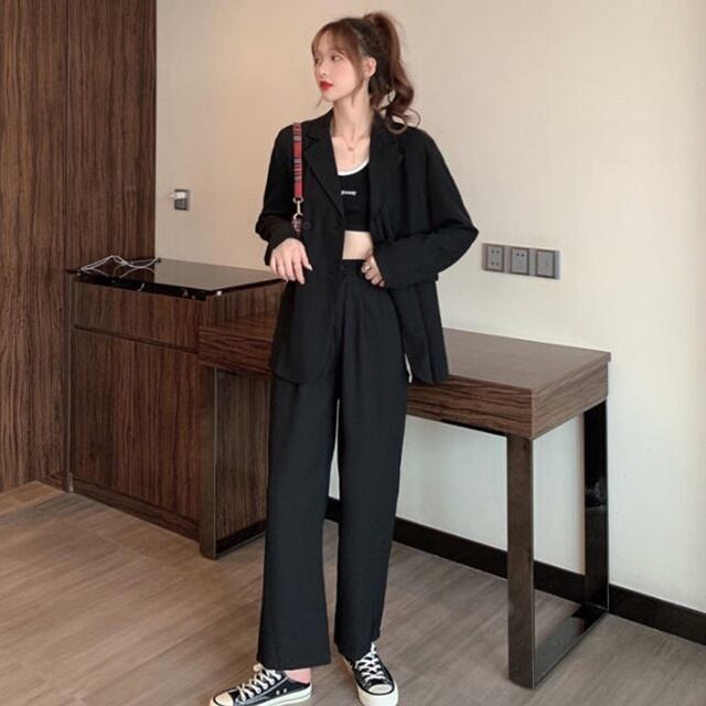 【送料無料】セットアップ レディース おしゃれ パンツスーツ 卒園式 大きいサイズ 卒業式 長袖 ジャケット ワイドパンツ きれいめ ハイウエスト フォーマル お呼ばれ 同窓会 大人 上品 20代 30代 40代 ブルー グリーン ブラック ホワイト BY-087