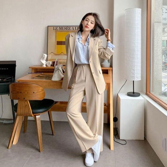 【送料無料】セットアップ レディース おしゃれ パンツスーツ 卒園式 大きいサイズ 卒業式 長袖 ジャケット ワイドパンツ きれいめ ハイウエスト フォーマル お呼ばれ 同窓会 大人 上品 20代 30代 40代 ベージュ ブラック BY-093