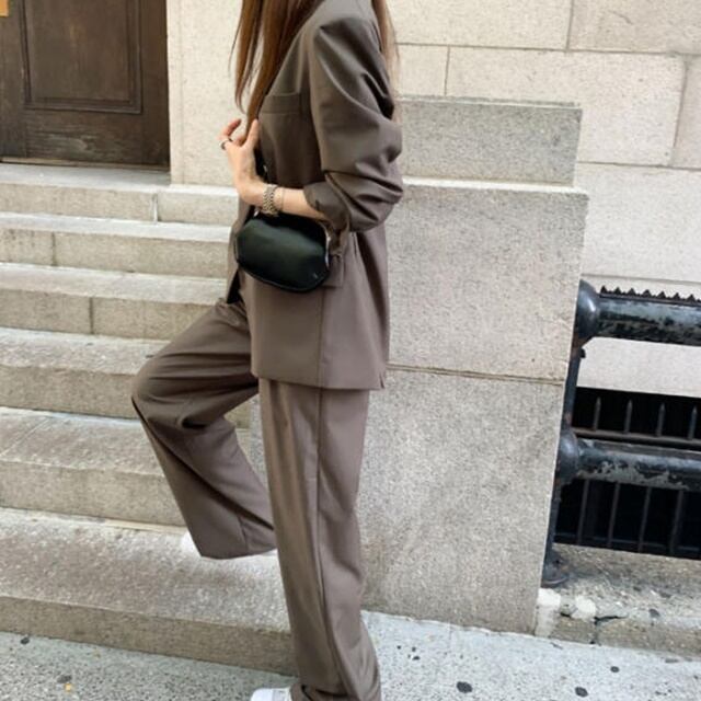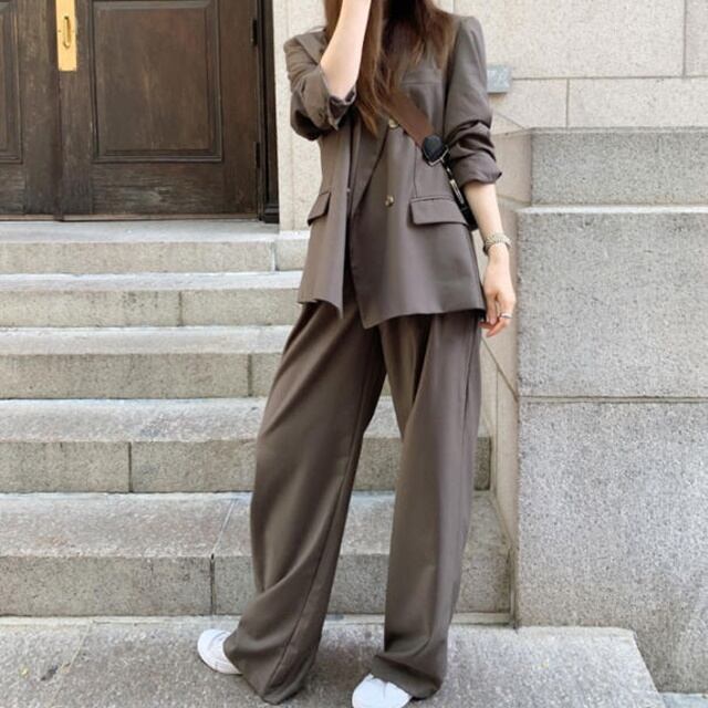 【送料無料】セットアップ レディース おしゃれ パンツスーツ 卒園式 大きいサイズ 卒業式 長袖 ジャケット ワイドパンツ きれいめ ハイウエスト フォーマル お呼ばれ 同窓会 大人 上品 20代 30代 40代 ブラウン グレー BY-095