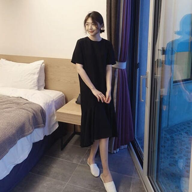 【送料無料】リネン ワンピース ナチュラル 秋 春 半袖 マーメイド フレア ロング ミモレ丈 30代 40代 50代 シンプル カジュアル 大人 無地 ベーシック ベージュ ブラック BY-125