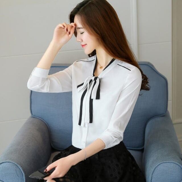 ボウタイリボン付きのレトロなブラウス♪