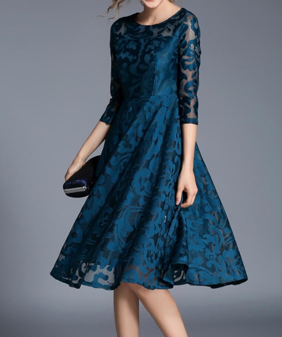 【送料無料】ワンピース 長袖 きれいめ ドレス フォーマル 大きいサイズ ロングドレス 母親 結婚式 袖付き レース シースルー お呼ばれ 二次会 30代 40代 50代 ブラック レッド ブルー BY-127