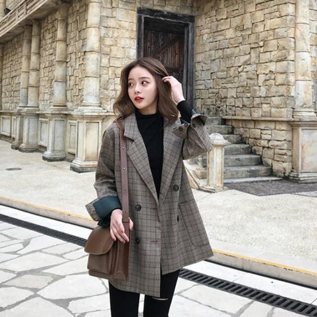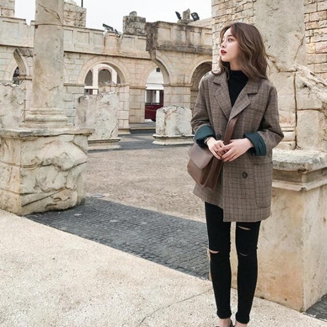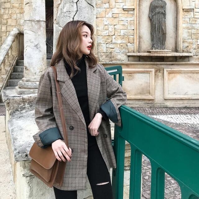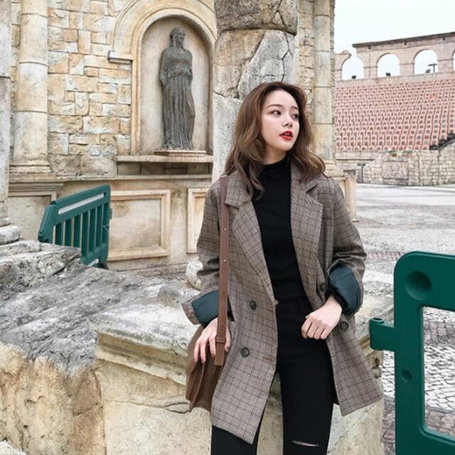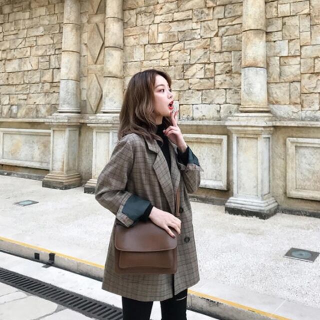 【送料無料】テーラードジャケット チェック アウター レトロ カジュアル きれいめ 大人 上品 20代 30代 40代 ベージュ BY-137