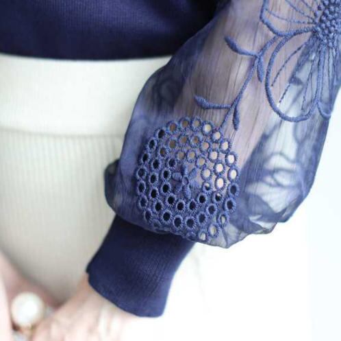 【送料無料】ブラウス トップス シースルー ボリューム袖 花柄 長袖 刺繍 大人 上品 きれいめ セクシー 20代 30代 40代 ブラック ネイビー グレー レッド BY-138