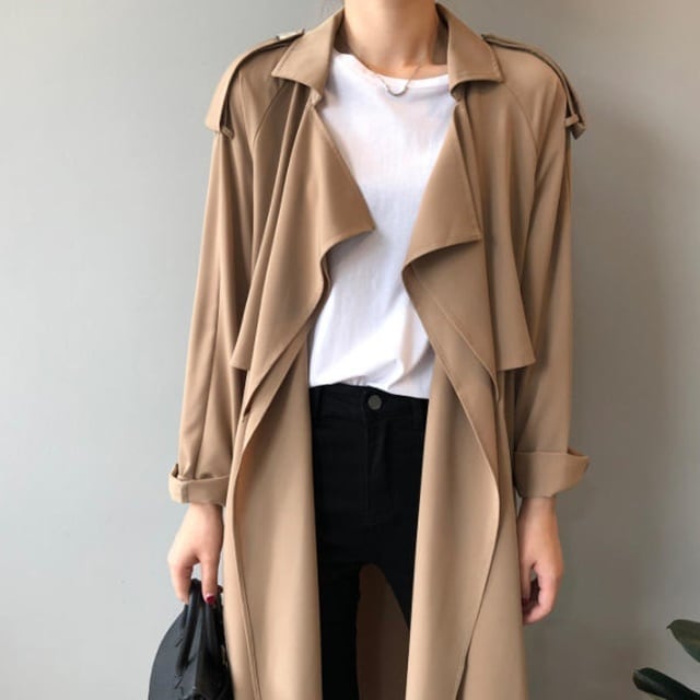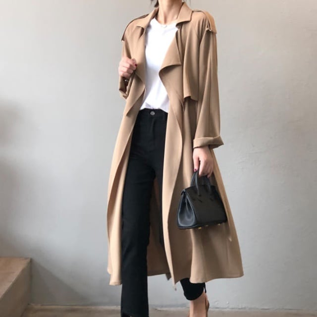 【送料無料】トレンチコート ロング スプリングコート ロングコート アウター 羽織 ウエストリボン 通勤 オフィスカジュアル シンプル カジュアル 30代 40代 50代 ベージュ ブラック BY-154