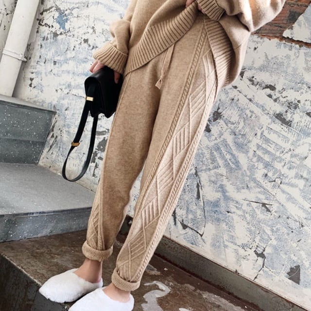 ケーブル編みのおしゃれなニットパンツ♪